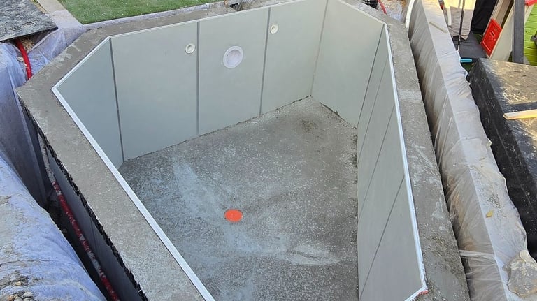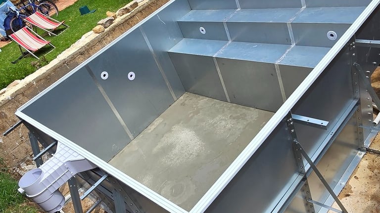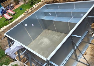 Étanchéité : Réalisée via un revêtement (liner, carrelage, PVC armé, etc.).